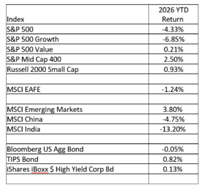 Performance across asset classes was broadly negative in Q1, with value-oriented and mid-cap stocks showing more resilience than growth-heavy indices.